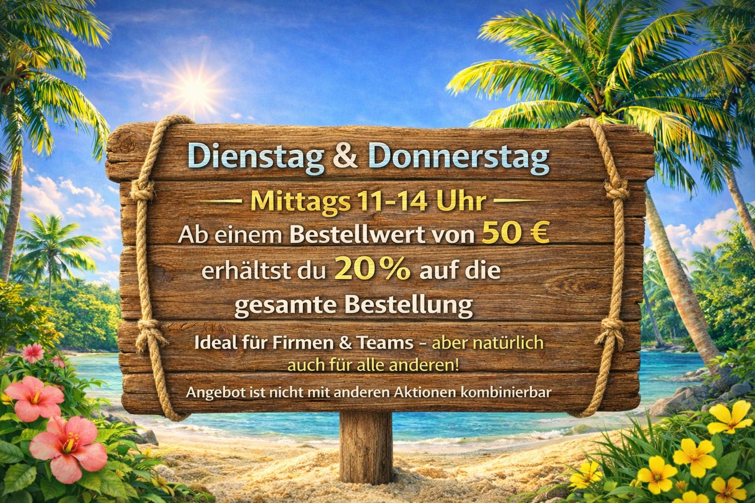 Warum am Schreibtisch hungern, wenn du richtig sparen kannst? Von Montag bis Freitag bieten wir dir zwischen 11:00 und 14:00 Uhr unseren exklusiven Mittagstisch an.